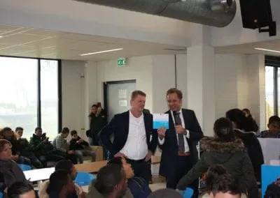 Accent Praktijkonderwijs Delfshaven is blij en trots na ontvangst predicaat Excellente scholen van Ministerie van Onderwijs uit handen van wethouder Hugo de Jonge.