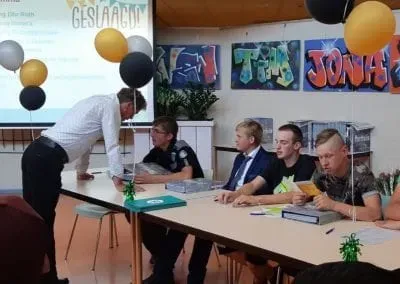 In de grote aula werden vervolgens de Pro diploma’s en de behaalde certificaten uitgereikt door de mentoren. De leerlingen werden bedolven onder de complimenten en cadeaus. Na deze uitreiking begon het feest pas echt! In de brugklas aula stond een Dj te draaien, stond er een cocktailbar klaar en werden er foto’s gemaakt van de leerlingen. Samen met de docenten werd er een geweldig feest gevierd dat nog doorging zelfs nadat de muziek al gestopt was! Het schoolverlatersgala was een groot succes! Wij wensen onze schoolverlaters alles goeds en succes voor in de toekomst! Wij gaan jullie missen!