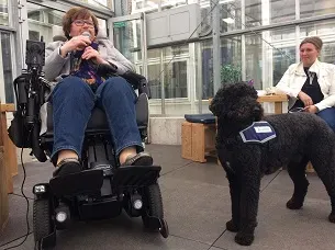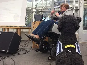 Afgelopen dinsdag was op onze locatie in Hoogvliet een presentatie over Stichting Hulphond Nederland door mevrouw Kruis en haar poedel Joey. Hulphond Nederland helpt mensen met een fysieke of geestelijke zorgvraag door inzet van een hulphond. Hierbij kun je denken aan een hond die heel drukke kinderen rustig maakt, veteranen uit een nachtmerrie laat ontwaken, een epileptische aanval herkent voordat deze zichtbaar is of honden die mensen helpen die gedeeltelijk verlamd zijn.