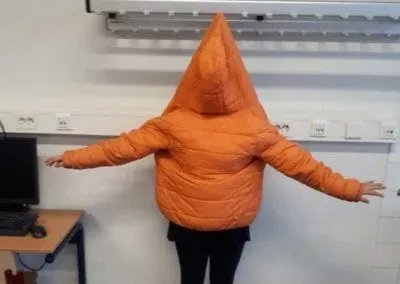 Je zit nu zoveel thuis! Heb je het gevoel dat je langzaam in je kamer verdwijnt?! Maak een foto van die verdwijning. Neem de kleur(en) van jouw omgeving aan, gebruik de patronen of verander van vorm. (Foto 1 – Verdwijnkunst Brechje / foto 2 Verdwijnkunst Edona)