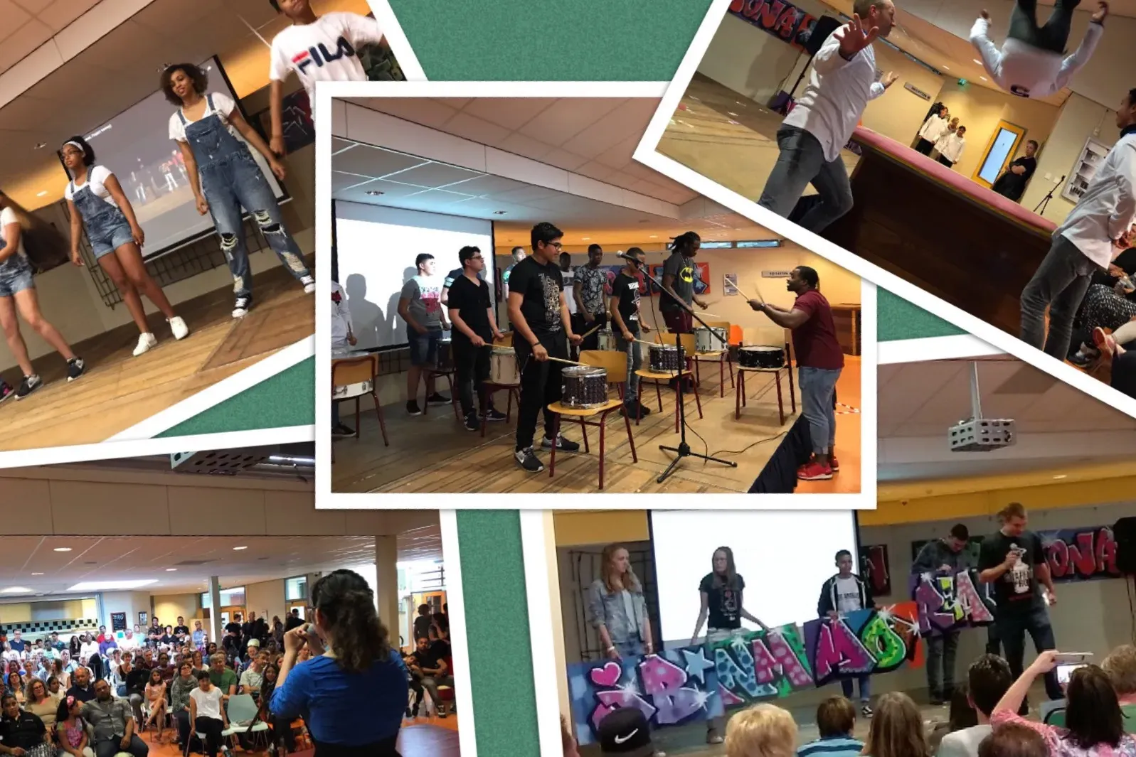 Met ritmisch tromgeroffel, tellend in de maat van 1, 2, 3, 4 openden de leerlingen van de modulegroep ‘Brass’ onze jaarlijkse presentatieavond.