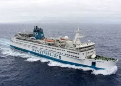 gewerkt. MercyShipsis een ziekenhuisschip dat bemand wordt door vrijwilligers die de armste landen van de wereld helpen door medische hulp te bieden in Afrika. Door de jaren heen heeft MercyShipsmeer dan 2 miljoen mensen in ontwikkelingslanden ( grotendeels in Afrika) geholpen met medische operaties en ontwikkelingsprojecten. MercyShipsis in 2015 begonnen met de bouw van een nieuw ziekenhuisschip, de Global Mercy. Verwacht wordt dat de bouw 2021 klaar zal zijn. Het schip wordt 174 meter lang, 28,6 meter breed, 12 deksmet 6 operatiekamers en 199 bedden voor patiënten. Het ziekenhuis wordt uiteraard uitgerust met de nieuwste medische apparatuur om hoge kwaliteit zorg te geven aan de patiënten. Daarnaast zullen er meer ruimtes zijn voor het trainen van chirurgen en andere medische professionals zoals verpleegkundigen en anesthesisten. Op het schip kunnen ruim 600 bemanningsleden wonen.