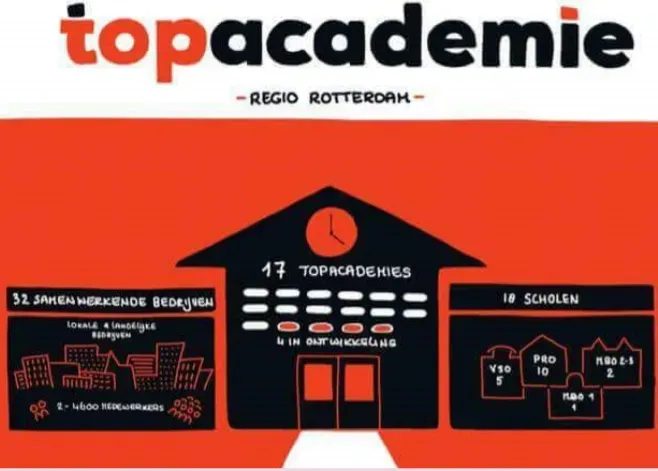 Accent Delfshaven leidt op naar werk! Wij willen onze leerlingen zo goed mogelijk voorbereiden op de arbeidsmarkt. Sinds kort krijgen leerlingen uit de bovenbouw de mogelijkheid om deel te nemen in TOP Academies! Dit zijn trajecten waarbij leerlingen gedurende twee jaar stage lopen en leren op de werkvloer van bedrijven in en om Rotterdam. Op deze manier vergroten we de vaardigheden van onze leerlingen en is de kans op uitstroom met een baan een stuk groter! Kijk voor meer info over deze trajecten op www.topacademies.nl.
