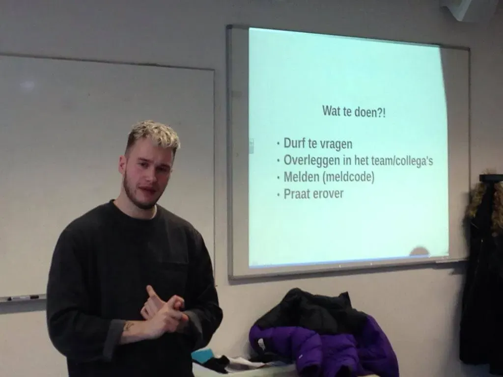 Het is een indrukwekkend verhaal waar de leerlingen aandachtig naar luisterden. Hij gaf o.a. aan dat het belangrijk is om signalen te herkennen van iemand die wordt mishandeld en wat je kunt doen om te helpen.
